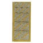 Cada hoja incluye múltiples pegatinas con relieve y brillo metalizado, fáciles de despegar y aplicar sobre papel, cartón, plástico o superficies lisas.