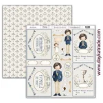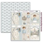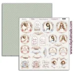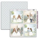 Papeles decorativos para scrapbooking ideales para crear álbumes, layouts, tarjetas, journals, agendas y proyectos de papelería creativa. Esta colección presenta un estilo romántico y vintage, con ilustraciones suaves de mariposas, flores, relojes antiguos, niños, mascotas y fondos envejecidos en tonos pastel.