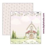 Papel para Scrapbooking Dayka iglesia y fondo rosa con flores.