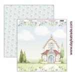 Papel para Scrapbooking Dayka Bendiciones con iglesia y fondo de flores azul