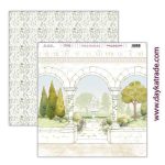 Papel para Scrapbooking Dayka Bendiciones con arcos y fuente y fondo de ramitas