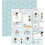 Papel para Scrapbooking Dayka Bendiciones con tiras y fondo de filigranas azul marino