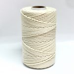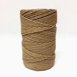 Esta bobina pequeña de hilado de yute natural de 3 LEAS y 2 cabos contiene 125 gr. y alrededor de 90 metros. El diámetro de este hilo de yute es de entre 1,5-2 mm.