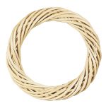 Una base robusta y duradera para una corona con un diámetro exterior de 25 cm hecha de paja seca, enrollada firmemente alrededor de un aro de metal, adecuada para usar como corona decorativa de Navidad o de otoño.
