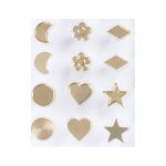 Contiene 12 piezas, flores, diamante, luna, círculo, corazón, estrella.