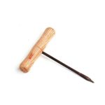 Consiste en una barra metálica alargada estrecha y acabada en punta. Mango de madera