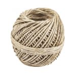 Esta bobina pequeña de hilado de yute natural de 3 LEAS y 2 cabos contiene 125 gr. y alrededor de 90 metros. El diámetro de este hilo de yute es de entre 1,5-2 mm.