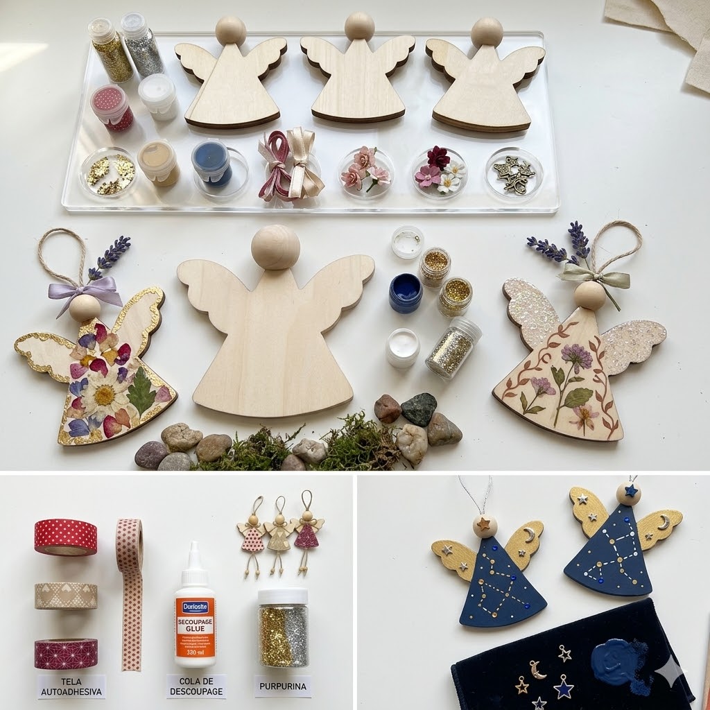 Kit Creativo Infantil : Angelitos de Madera (3ud)