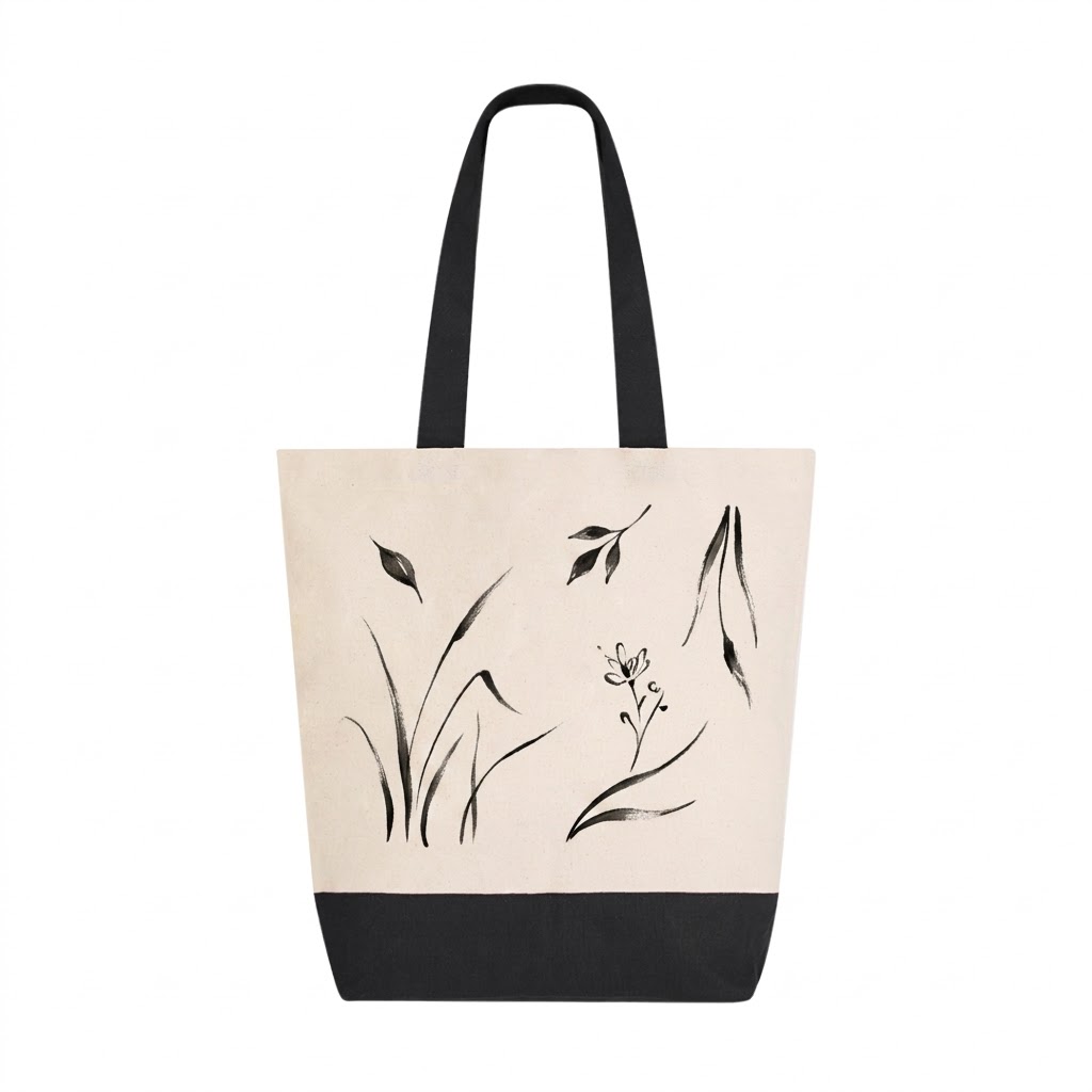 Bolsa en algodón de 280 g/m2 con diseño en base y asas del mismo color. Asas largas de 60×4 cm con refuerzo, de acabado cosido, con bolsillo interior.