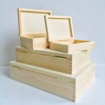 Caja rectangular de madera de pino.