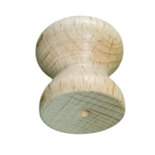 Pomo de madera maciza, de diseño redondeado y acabado liso, con vetas naturales visibles. Ideal para manualidades, proyectos DIY y muebles de estilo rústico o natural.