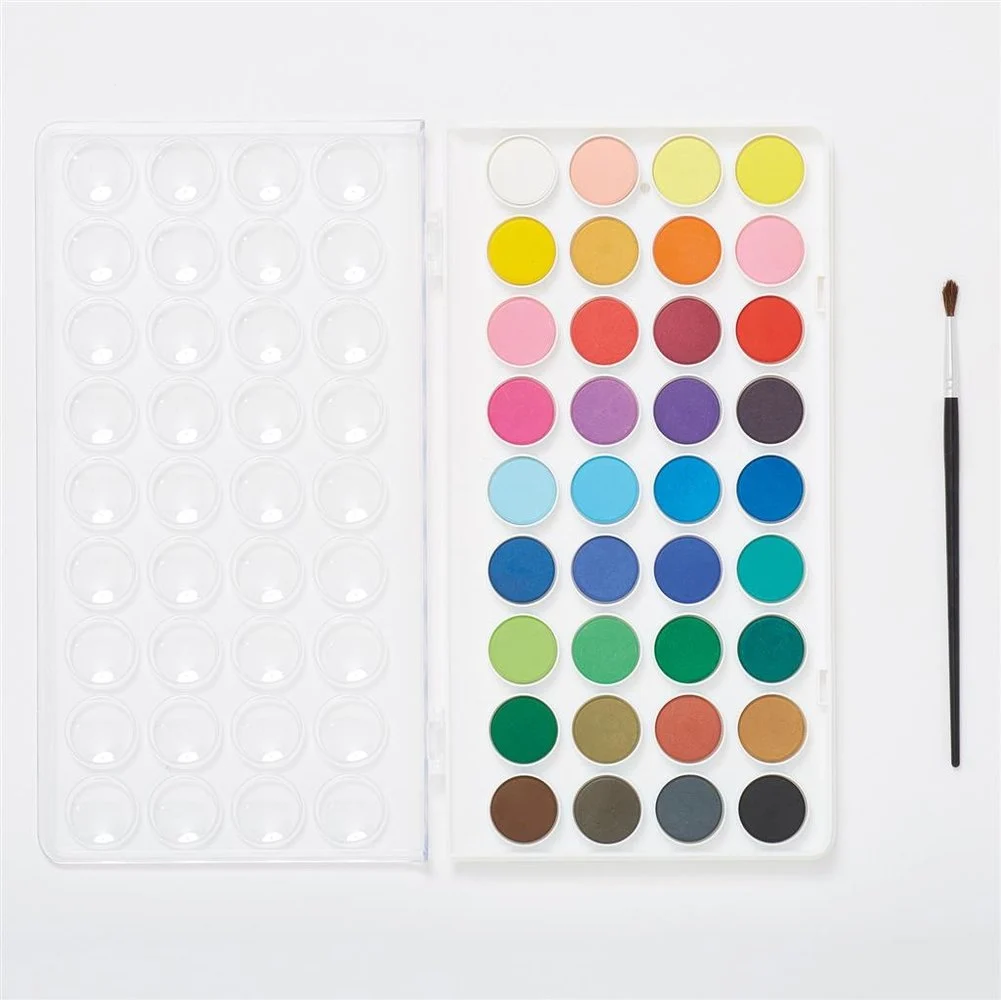 Una amplia gama de 36 colores, todos en su propia paleta. Incluye su propio pincel, lo que lo hace perfecto para pintar sin complicaciones y en cualquier lugar.