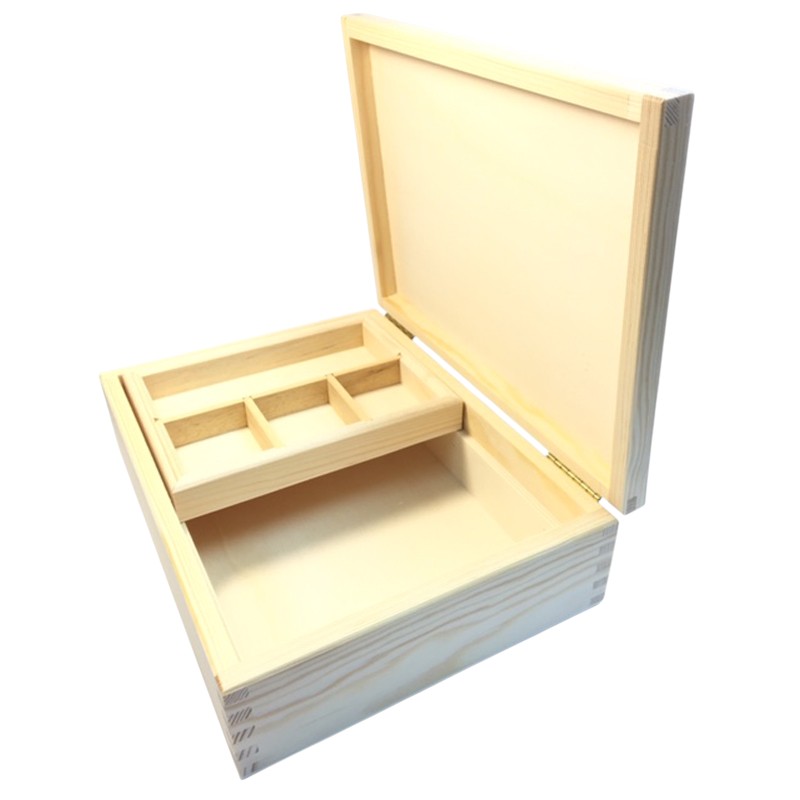Caja Madera de Pino con Bandeja 25x19x7 cm